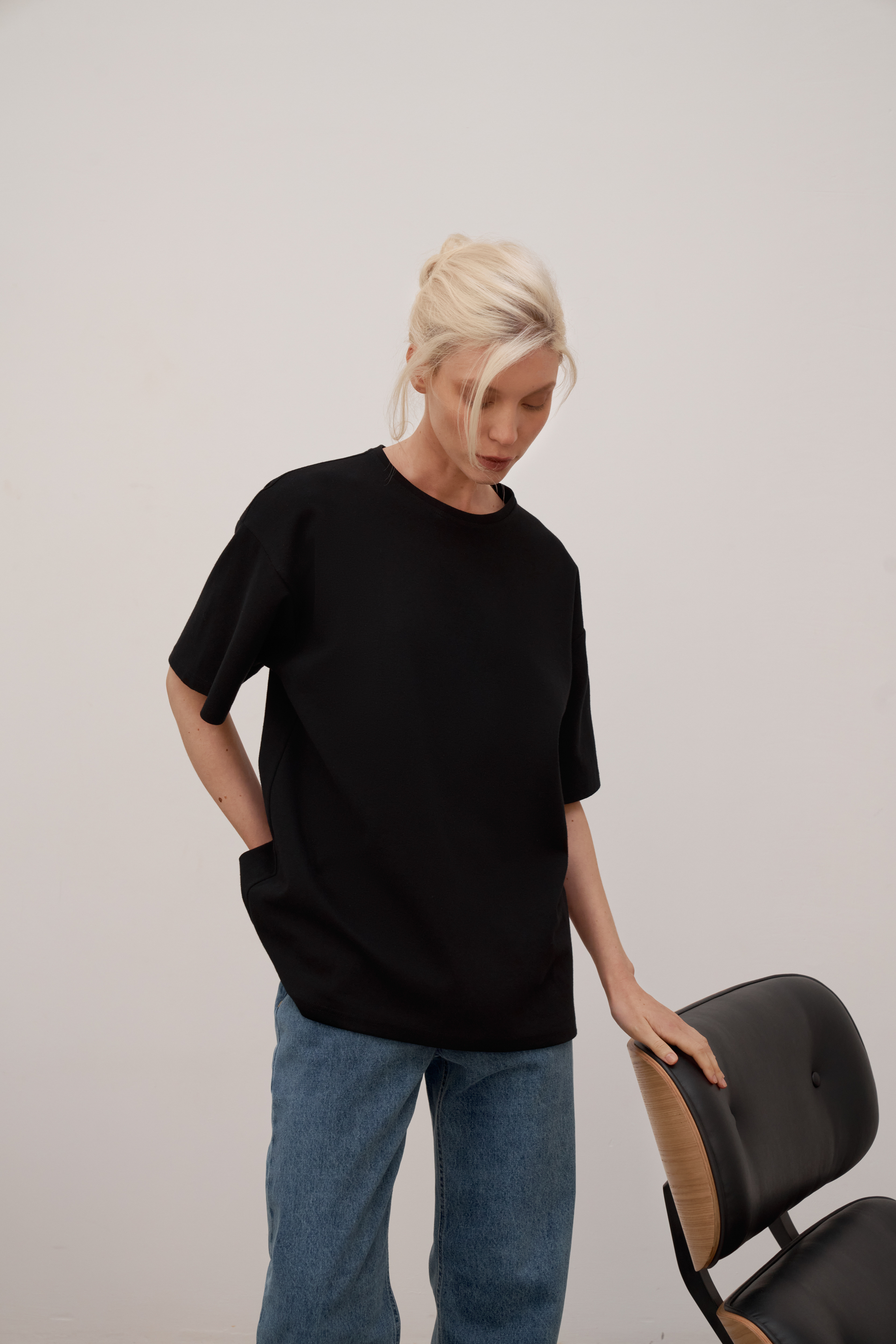 Футболка свободного кроя из хлопка, средней плотности, держит форму - универсальная модель на каждый день.
