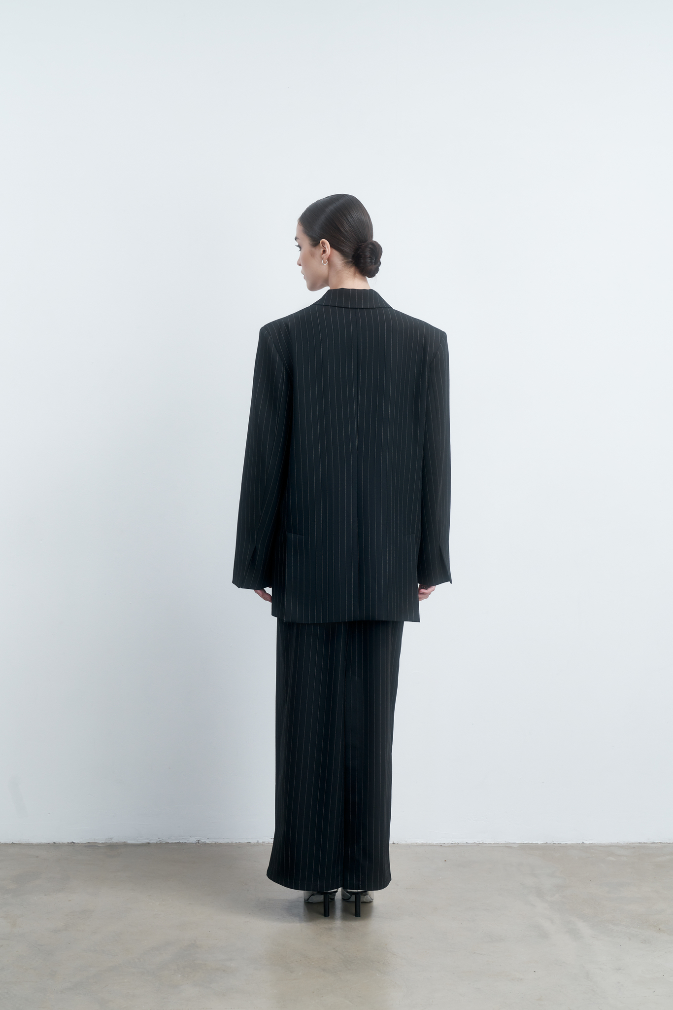 Жакет в новом прочтении - объемный силуэт, рукав с открытой шлицей и ассиметричная застежка на 1 пуговицу. По спинке двойная шлица и декоративная отстрочка деталей.